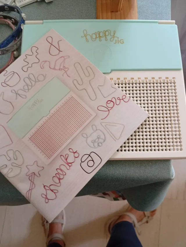 Máquina para crear diseños con hilo. - Incluye plantilla con varios diseños. - Base con rejilla para guiar el hilo.