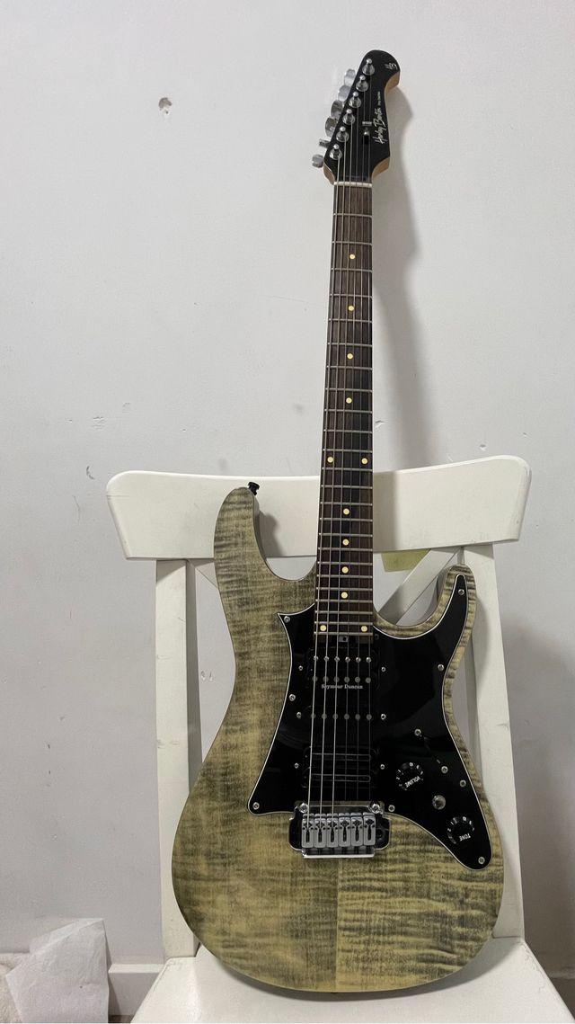 Detalles del productoLa guitarra esta en buen estado excepto un roce que se ve en la foto. Comprada a lutier por puro capricho y al final no la he usado ni dos veces, el sonido es espectacular. Adjunto también pedalera de pie para cambiar efectos, no cabe en las fotos. También entrego funda y cables. Acepto cambios razonables, y no contesto ofertas absurdas. Gracias.