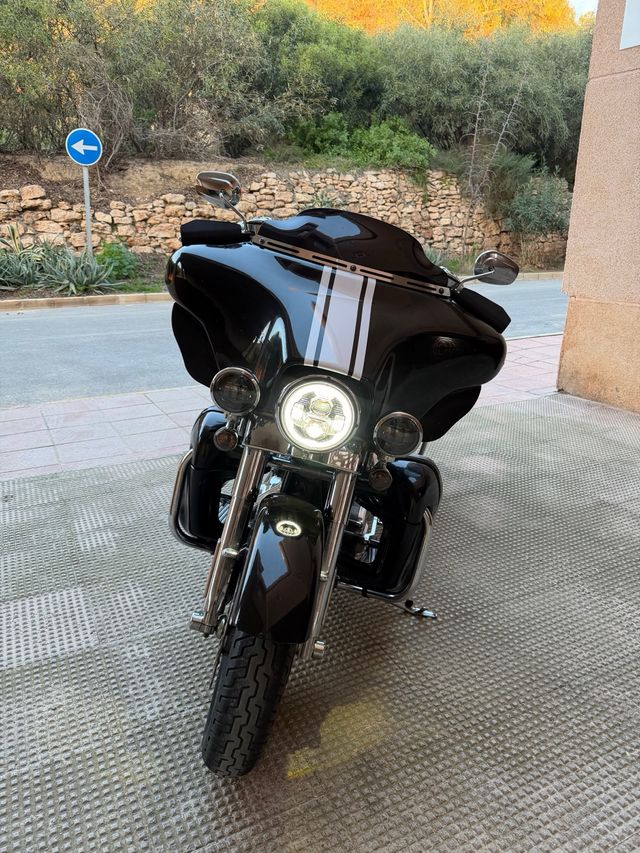 Detalles del productoHarley Davidson Ultra Classic CVO del 2006,motor scream eagle 103. Vinilada en negro brillo con detalles en blanco (pintura original en la última foto), 112.000km. itv y revisión pasada en julio de 2025,
