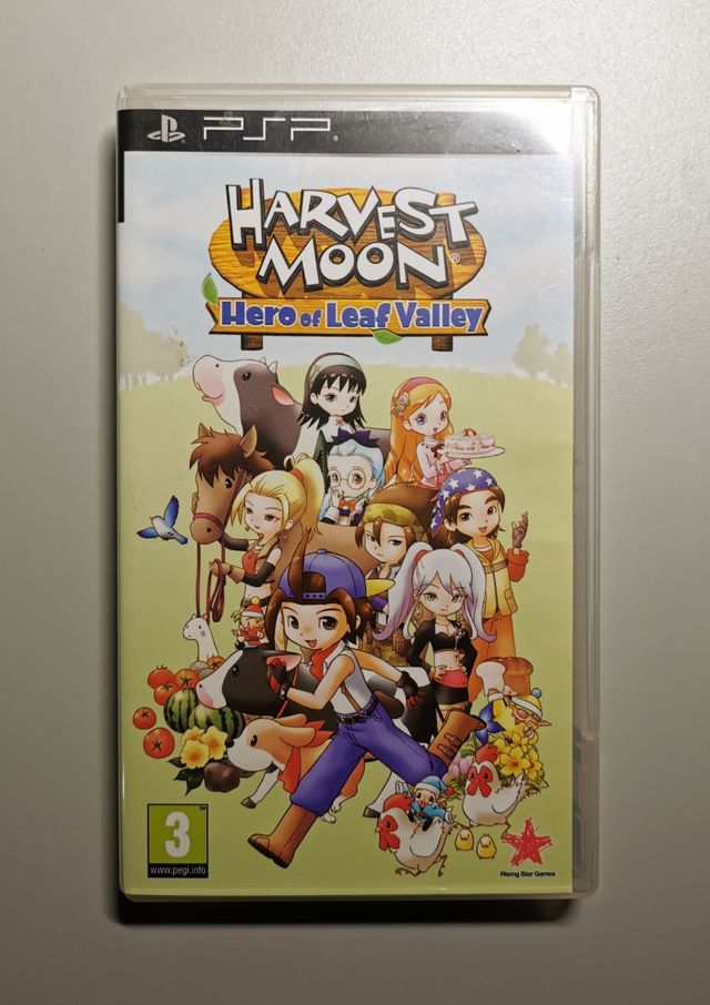 Videojuego Harvest Moon Hero of Leaf Valley para la PSP. Jugado, pero en buen estado. Conserva el panfleto. Está en inglés.
