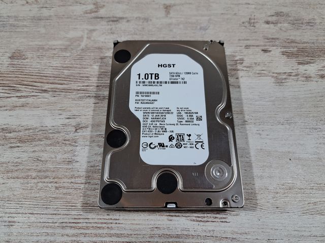 Detalles del productoDisco duro HGST (Western Digital) de 1 TB, modelo Ultrastar 7K2 HUS722T1TALA604. En perfectas condiciones estéticas y de funcionamiento, comprobado con CrystalDiskInfo.
