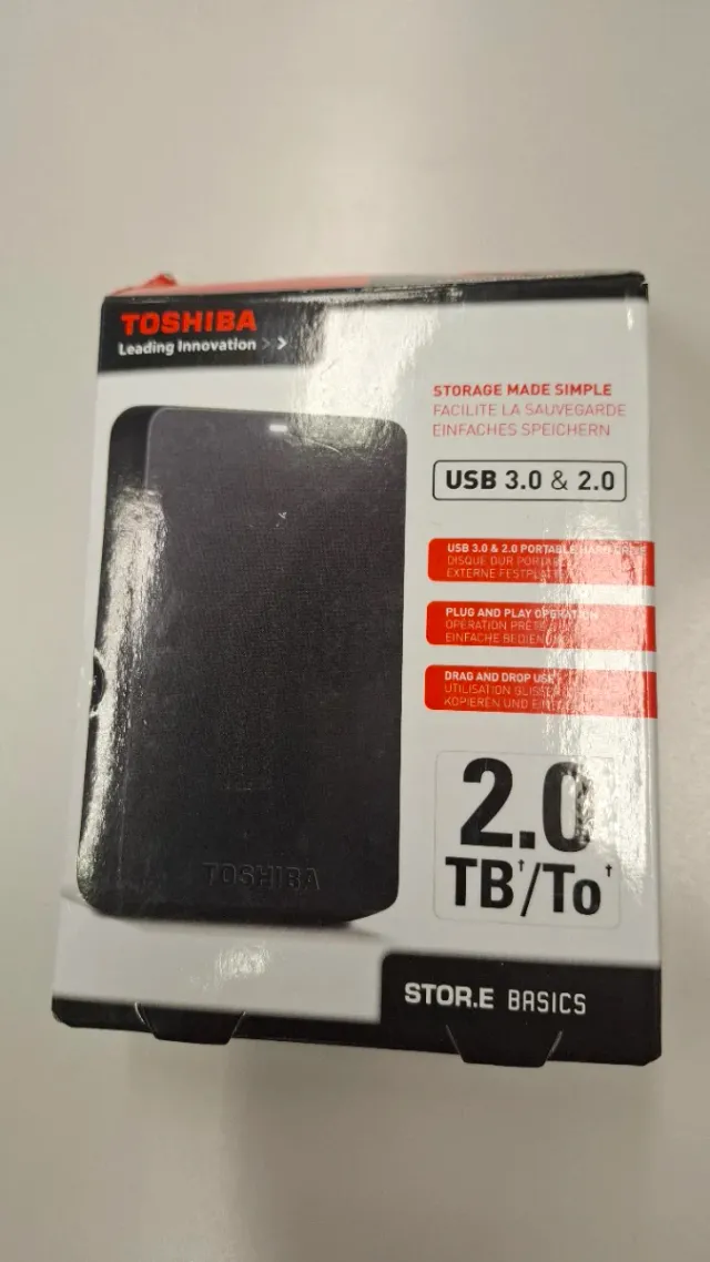 Detalles del productoDisco duro externo Toshiba Stor.e Basics de 2TB. Está como nuevo aunque la caja tiene imperfecciones en el exterior.