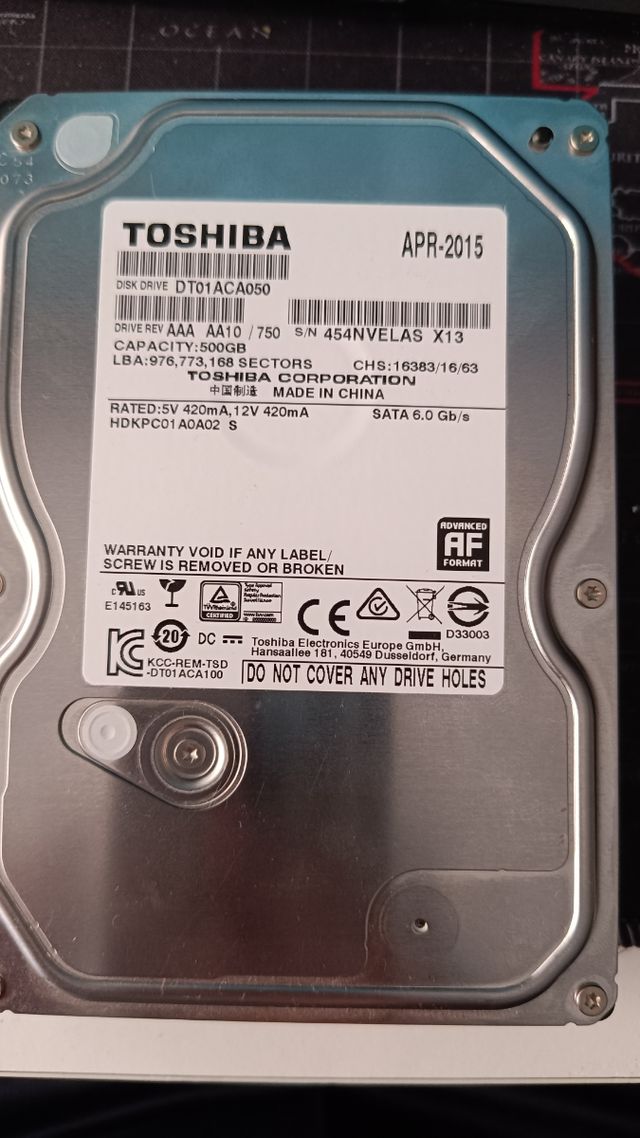 Disco duro Toshiba de 500gb de segunda mano. Funciona correctamente. CristalDiskInfo: Estado bueno, 800 horas encendido