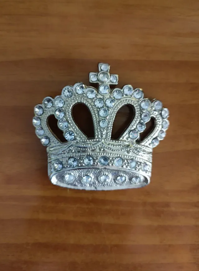 Hebilla de cinturón con un diseño elegante y adornada con pedrería brillante. - Color plateado. - Detalles de pedrería blanca.
