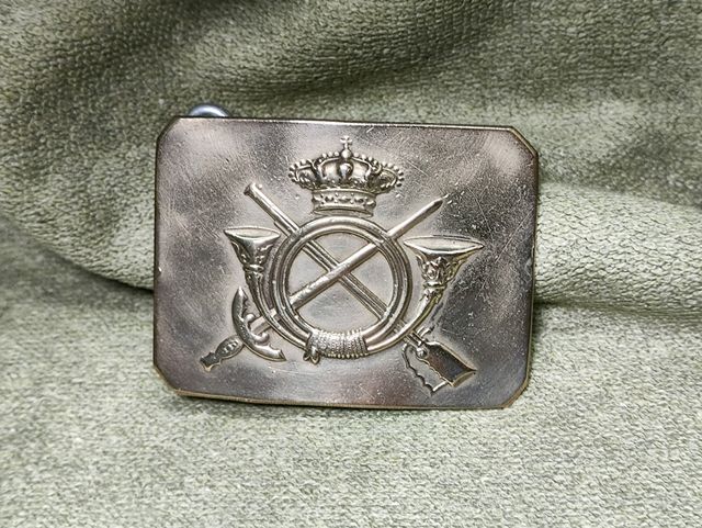 Detalles del productoReproducción en latón colado de hebilla para el Arma de Infantería, época Alfonsina, posible uso durante 2a República y guerra civil "capando" la corona con lija. Para cinturones de hasta 42 mm de ancho.