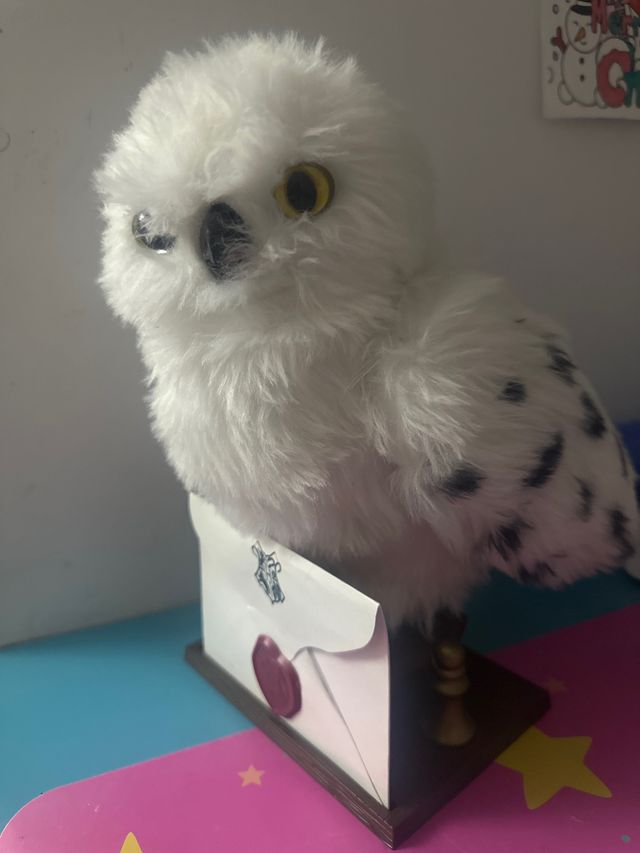 Detalles del productomuñeco del búho Hedwig de Harry Potter. Es un muñeco que hace sonidos y se mueve.