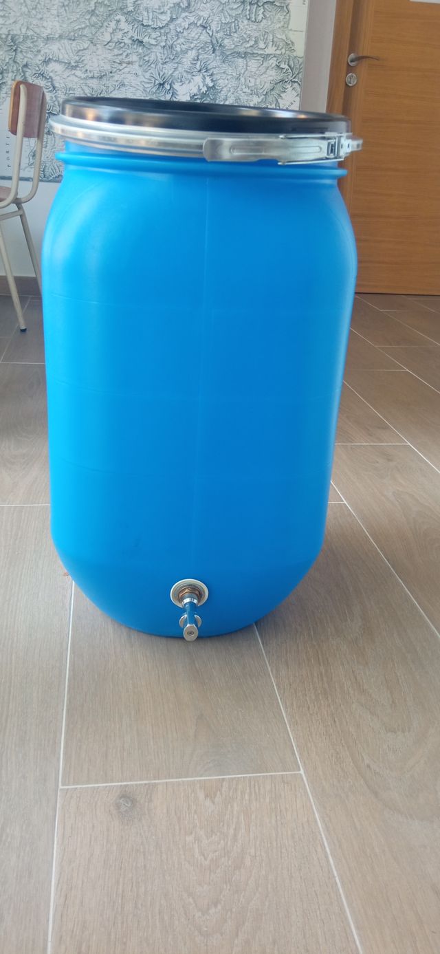 Detalles del productoBidón azul de polietileno, con un diámetro de boca superior de 36cm y de boca interior de 30cm. Grifo metálico de latón 1/2" x 3/8"