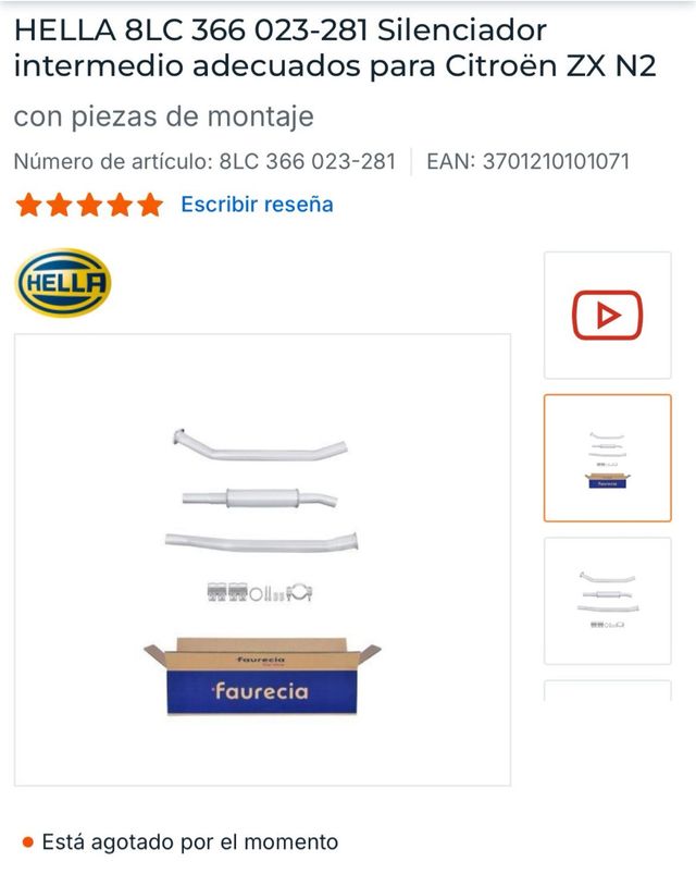 Silenciador intermedio HELLA para Citroën ZX N2.