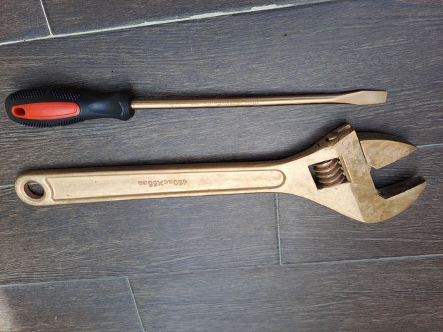 Detalles del productoSe vende conjunto llave inglesa y destornillador plano marca Ega master en cobre-berilio antichispas con cod 71449 -72274 segun fabricante de medidas 450×55 mm y 11x250 mm.