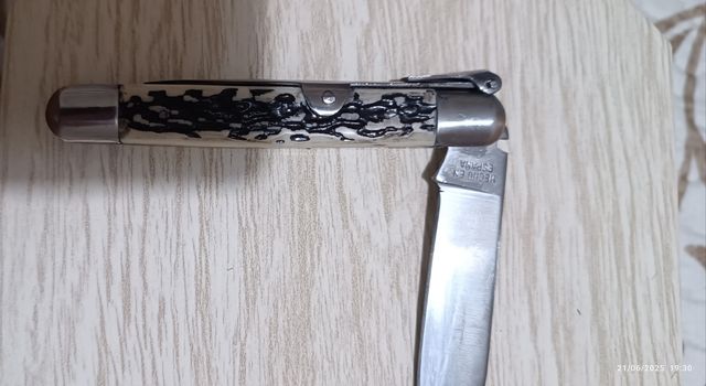 Detalles del productoCuchillo plegable antiguo de Santa Cruz de Mudela, España. Es una pieza con una estética clásica. Imitación asta aunque la hoja es la misma, lo único que la hace mas economica. 9 centímetros hoja.
