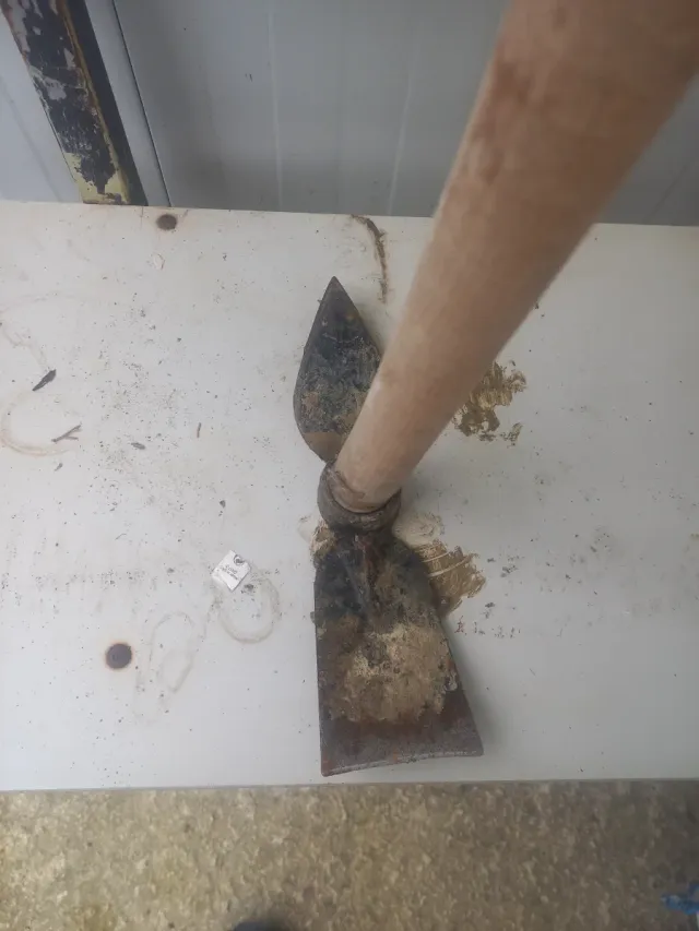 Herramienta de mano para trabajos de jardinería o construcción. - Mango de madera. - Doble cara con pala y pico.