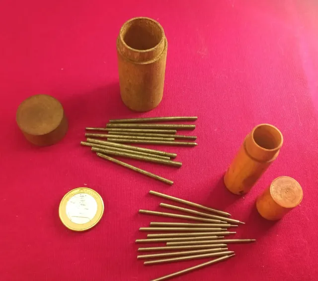 Set de herramientas para relojero que incluye dos cilindros con punzones. - Cilindros de madera. - Punzones metálicos.