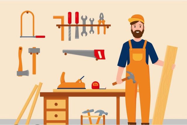 Conjunto de herramientas para carpintería y trabajos con madera, puertas, parquet, cocinas, montaje de muebles, etc.