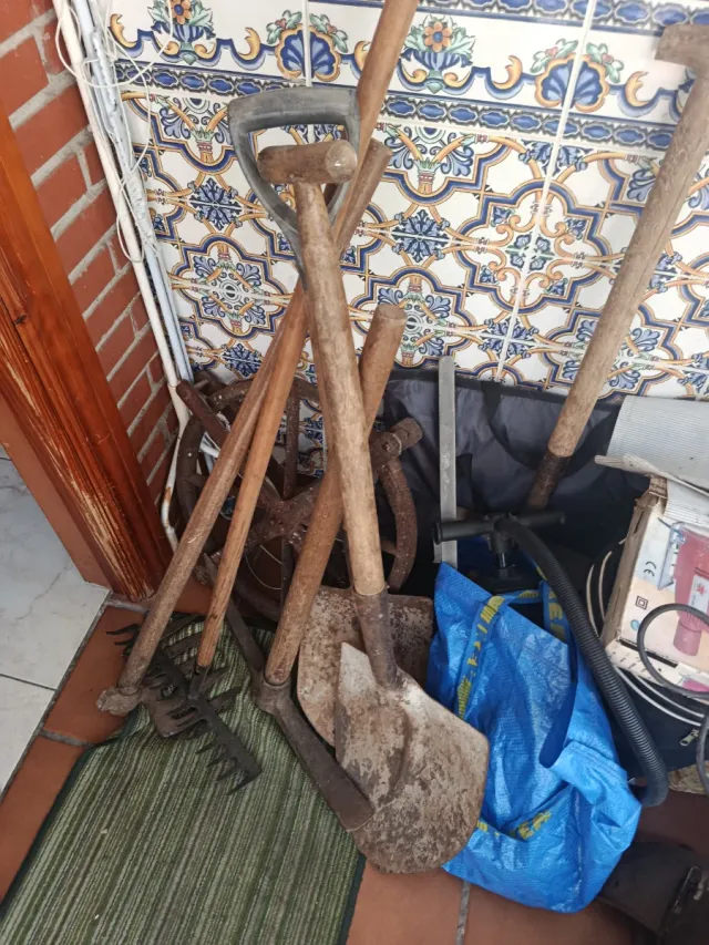 Lote de herramientas de jardinería para cultivar tu huerto o jardín. La polea de hierro fundido no se encuentra disponible.