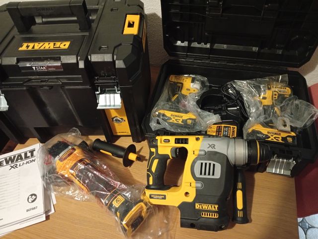Detalles del productoSet de herramientas eléctricas Dewalt incluye un taladro percutor,un atornillador de impacto,un taladro atornillador,una radial ,2 baterías de 5,un cargador, dos cajas Dewalt