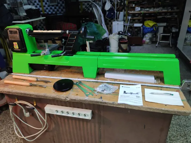 Detalles del productoTorno de madera sin usar, solo para probarlo, marca Madera potencia 400W, 4 velocidades, longitud de corte 1 metro diámetro de corte 35 cm. con los accesorios en las fotos, en su embalaje original.
