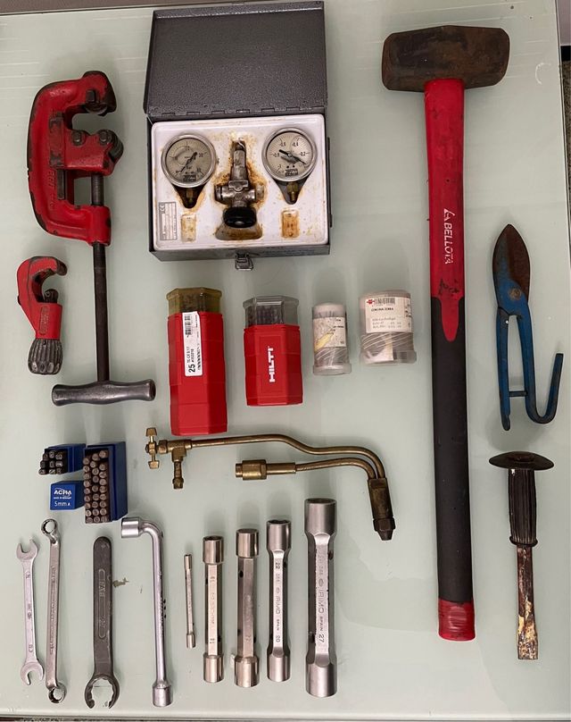 Detalles del productoSe venden herramientas y material ,las brocas hilti ya no estan, la mola ya no la tengo y el mayo tampoco, punzones para marcar tanto letras como numeros de 5mm, coronas para agujerear pared, barilla de plata etc.... ,mirar bien lo que sea necesario y preguntar , se hace envio a partir de un precio de un lote importante de herramientas y material