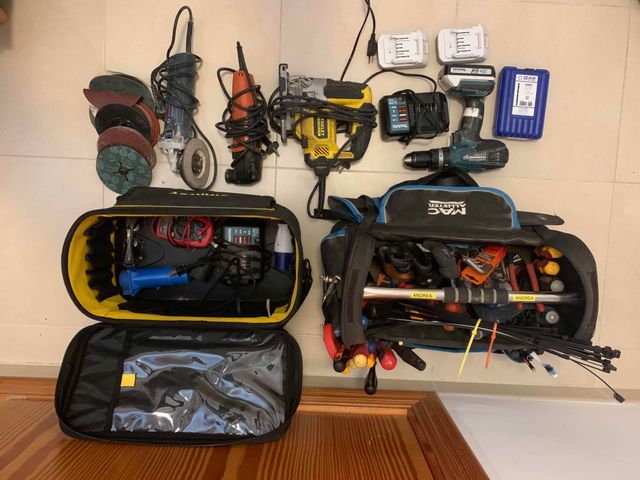 Detalles del productoLote de herramientas variadas y maletines de transporte. precio no negociable (es mucha herramienta perfecta para empezar un trabajo autonomo). vendo para jubilacion.