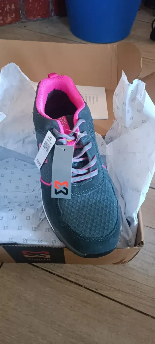 Zapatillas nuevas de la marca Wurth, numero 39 - Color gris con detalles en rosa. - Cierre con cordones. - Suela de goma.