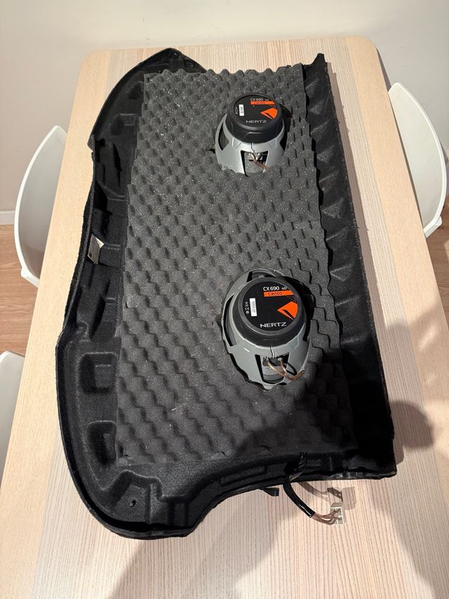 Altavoces Hertz CX 690 Cento. - Diseño plateado y naranja. - Incluye base de espuma y cableado.