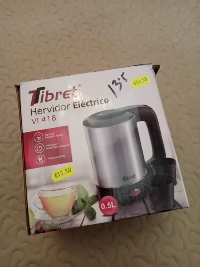 Hervidor eléctrico Tibret modelo VI 418. - Capacidad de 0.5L. - Potencia de 600W. - Diseño compacto y moderno.