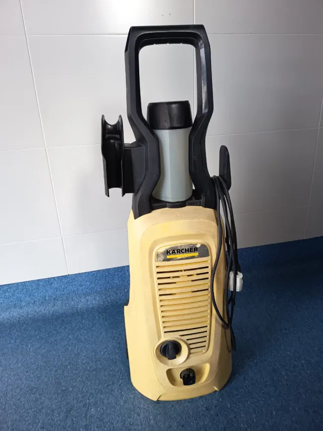 Detalles del productoHidrolimpiadora Karcher K4 de color amarillo y negro. Ideal para limpieza exterior. Para reparar funciona pero tira agua por debajo sin pistola y sin manguera