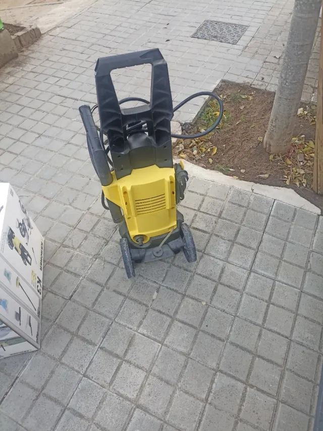 Hidrolimpiadora Karcher en buen estado, lista para usar. - Modelo Karcher. - Color amarillo y negro. - Ruedas para fácil transporte.