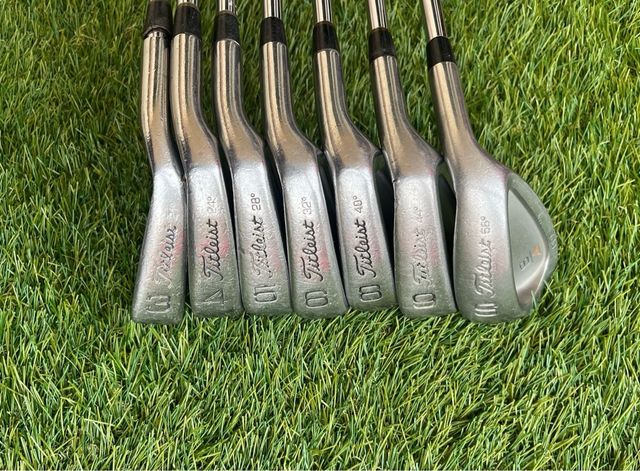 Detalles del productoSet de hierros Titleist DCI para golfistas diestros. Incluye los palos 3, 4, 5, 6, 8, 9 y Sand Wedge.