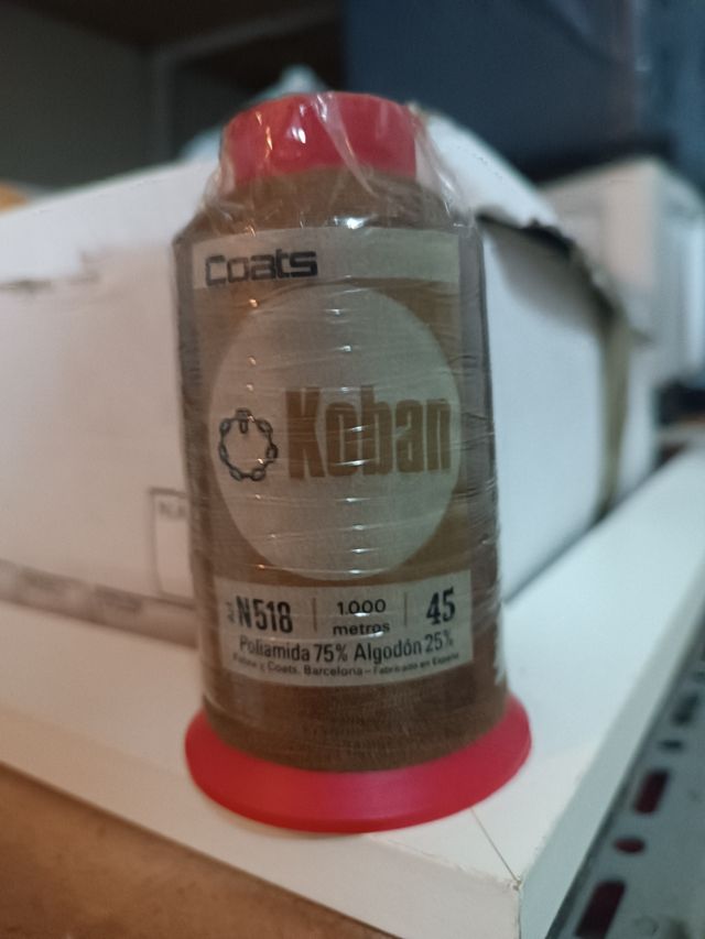 Hilo de coser de la marca Coats, modelo Keban N518. - Composición: Poliamida 75%, Algodón 25%. - Longitud: 1.000 metros. - Grosor: 45.