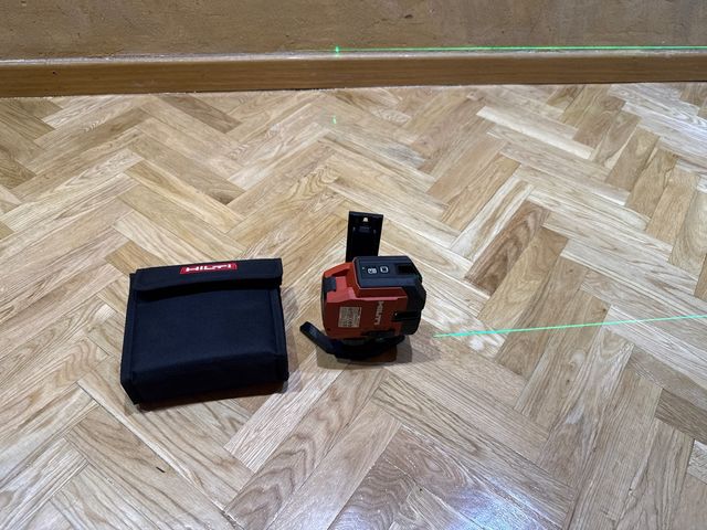 Detalles del productoVendo láser Hilti PM20-CG como nuevo hace 4 plomadas y vertical horizontal con soporte de pared y su estuche bolso de pilas
