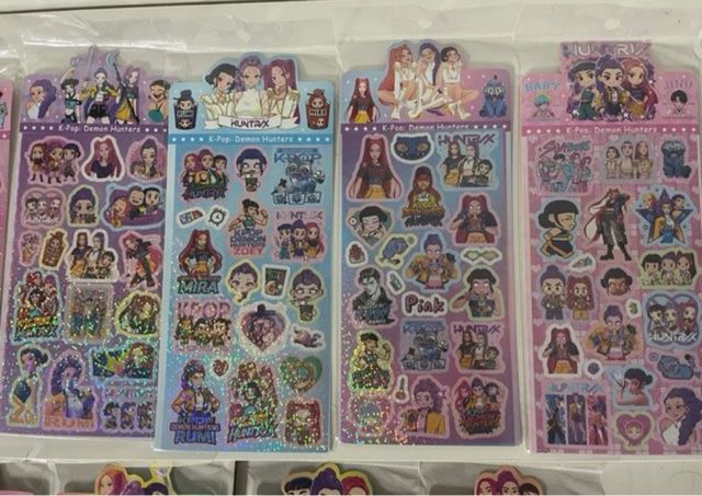 Detalles del productoHoja de pegatinas brillantes con temática K-Pop de la marca Huntrix.