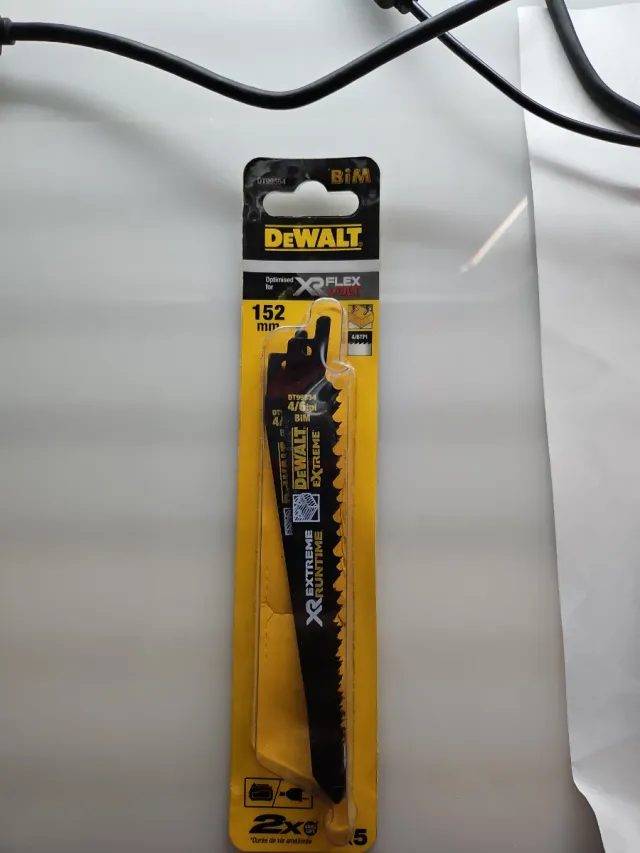 Hoja de sierra recíproca DeWalt de 152 mm, fabricada en BIM (Bimetal). - Modelo: DT190554 - Longitud: 152 mm - Dientes por pulgada (TPI): 4/6 - Optimizado para XFLEX