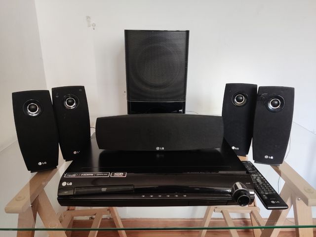 Detalles del productoCine en casa LG HT904SA. Tipo de reproductor de discos ópticos: reproductor de DVD. Canales de salida de audio: 5.1 canales, potencia nominal RMS: 1000 W. Potencia RMS del altavoz central: 155 W. Potencia RMS de los altavoces satélite: 155 W. Potencia RMS del subwoofer: 225 W Disfruta de tus fotos, tu música y tus películas en este Home Cinema. Permite simular con cinco altavoces un sonido virtual 10.1 gracias al Virtual Sound Matrix. Dolby Pro Logic II, Dolby Digital, Decodificador DTS