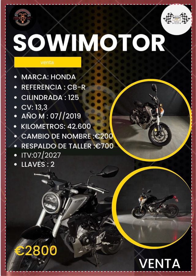 Detalles del productoHonda CB125R en venta, matriculada en julio de 2019. La moto tiene 42.600 kilómetros.