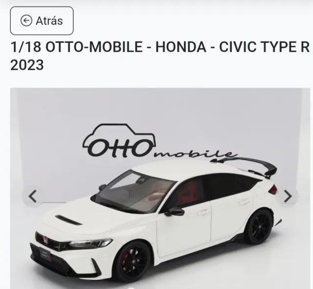 Detalles del productoVendo Honda Civic Type R Otto Mobile a escala 1:18. Nuevo en caja original. Se entrega en mano en Soria, Zaragoza, País Vasco, Madrid o Barcelona, o se envía a cualquier punto de España. (No GT Spirit, Norev, Minichamps, Kyosho, Autoart, GMP).