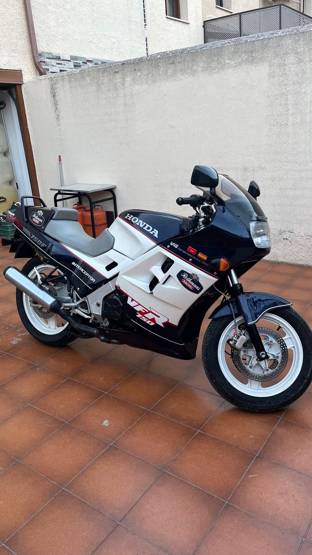 Moto deportiva Honda VFR750F V4 -Modelo V4 -Diseño deportivo azul y blanco - Vendo o cambio por moto trial,moto enduro o quad ltz 400