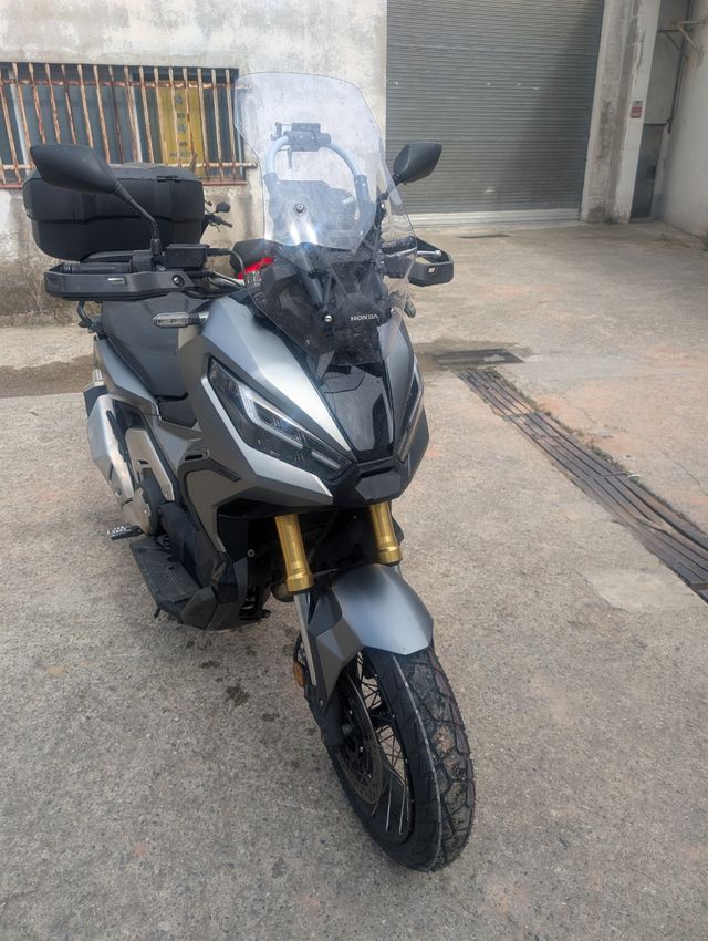 Moto Honda X-ADV 750. - Diseño moderno y versátil. - Parabrisas elevado para mayor protección. - Espejos retrovisores amplios. - Maleta trasera incluida.