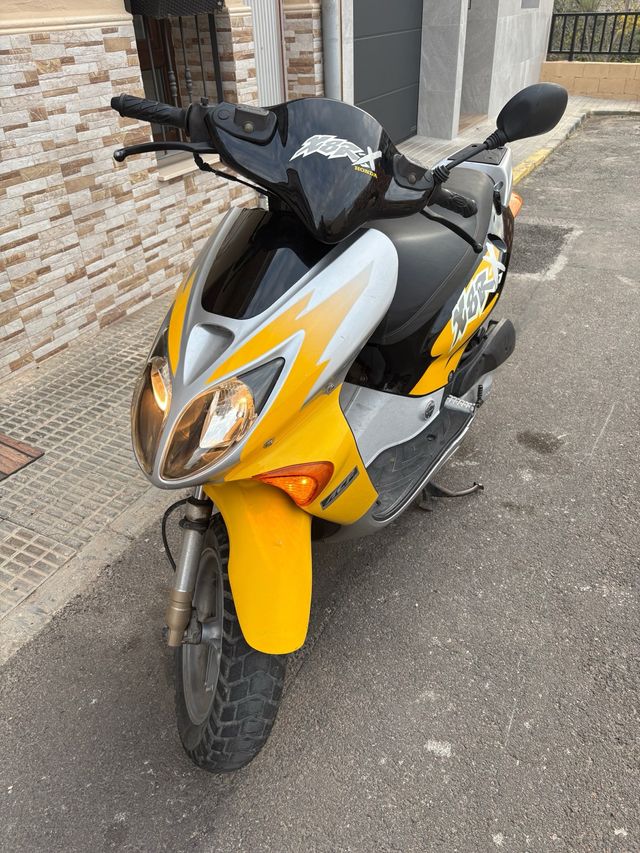 Detalles del productoMoto Honda X8R de 49cc con un diseño deportivo y llamativo en colores amarillo y negro.