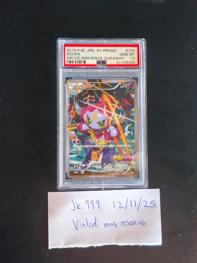 Carta Pokémon Hoopa #155 de la promoción JPN XY, con calificación PSA 10. - Graduación: GEM MT 10. - Promoción: Archjinni/Rings Giveaway. - Año: 2015.