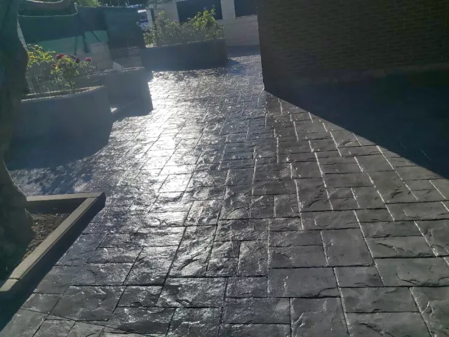 Detalles del productoSuelo de hormigón impreso y pulido con acabado moderno y resistente.