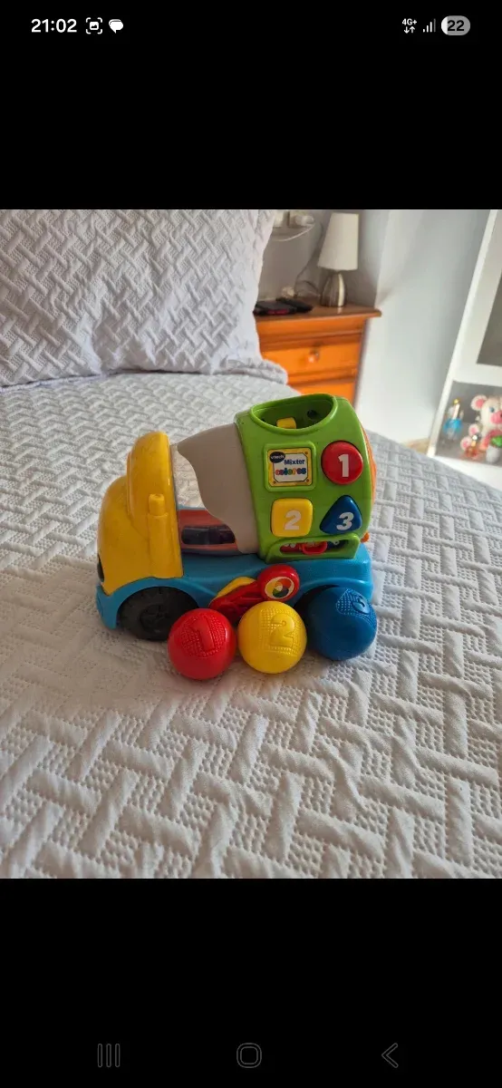 Divertida hormigonera de juguete VTech. - Incluye tres bolas de colores para insertar. - Botones con números y formas.