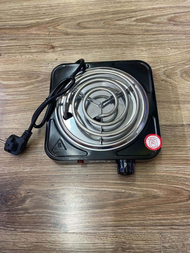 hornillo eléctrico de 1000W. Es compacto y tiene un diseño elegante. - Potencia: 1000W - Control de temperatura giratorio