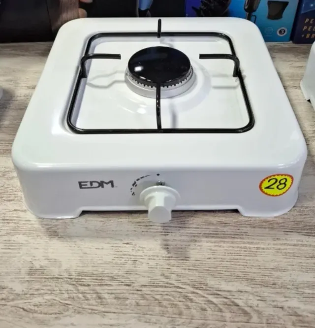 Detalles del productoHornillo de gas butano de un fuego de la marca EDM. Es un modelo compacto y práctico.