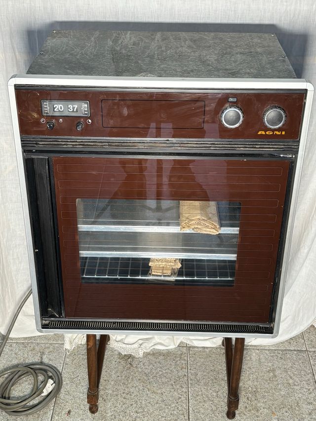 Detalles del productoHorno de cocina de la marca Agni con un diseño clásico en color marrón.