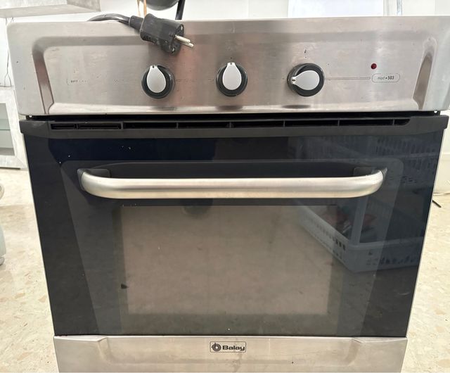 Horno de cocina de la marca Balay. - Acabado en acero inoxidable. - Puerta de cristal. - Tirador metálico.