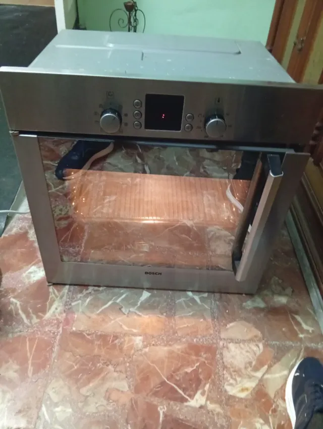 Detalles del productoHorno de cocina de la marca Bosch, con un acabado en acero inoxidable.