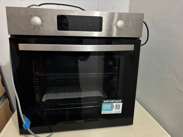 Detalles del productoHorno de cocina de la marca Candy. Diseño moderno en acero inoxidable y cristal negro.