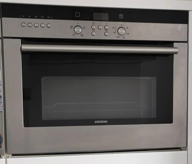 Detalles del productoHorno compacto de la marca Siemens con función de microondas integrada.