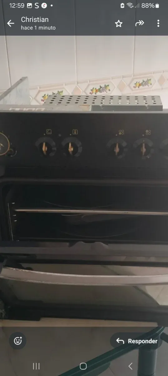 Detalles del productoHorno de cocina con mandos. El horno funciona a la perfeccion pero intente quitar el cristal de la puerta para limpiarlo y se me rompio, por lo que no lleva el cristal embellecedor de fuera. Por dentro esta perfecto y su funcionamiento tambien es perfecto. Solo se rompio el cristal embellecedor, el que soporta el calor del horno esta perfecto.