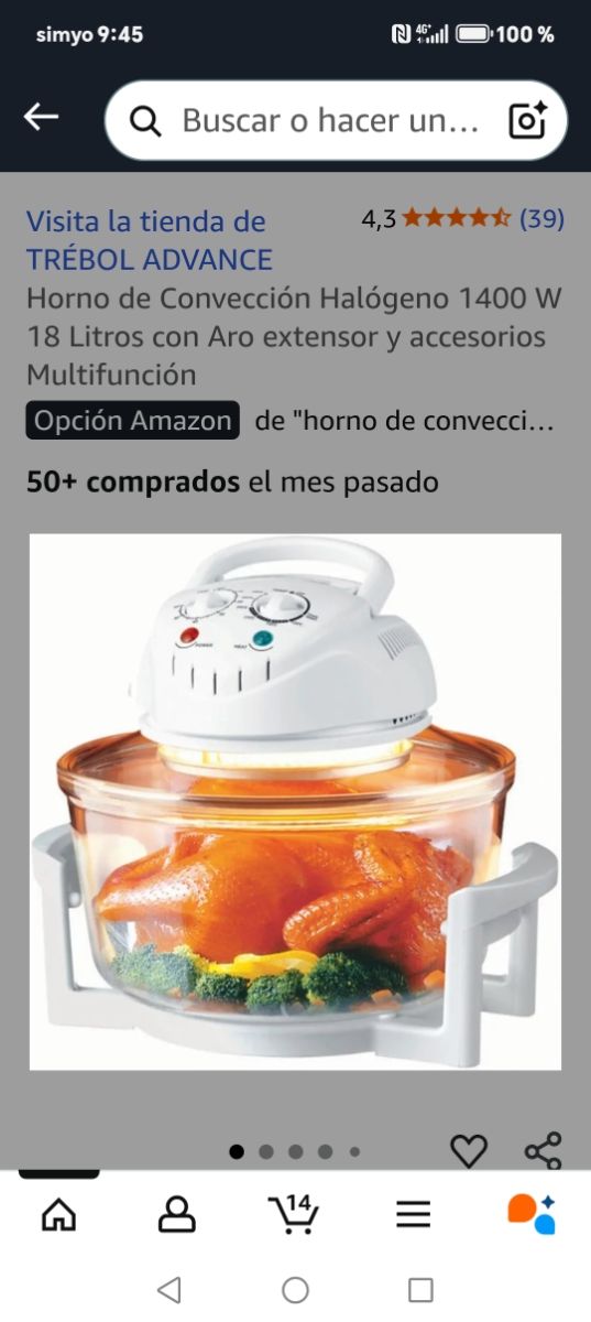 Detalles del productoHorno de convección halógeno con gran capacidad de 18 litros. Incluye aro extensor y accesorios para mayor versatilidad.